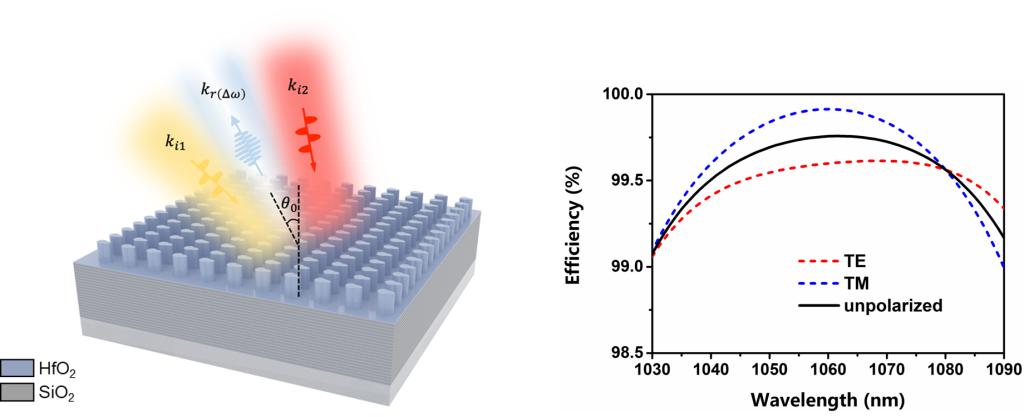 该工作以利特罗光栅、光学超表面的效率需求为导向,在团队前期工作实现的光频单波长完美异常反射超表面的研究基础上,进一步解决了“宽带效率”的瓶颈问题,有望推动基于光学超表面的激光光谱合成、微型光谱仪等相关仪器的发展。