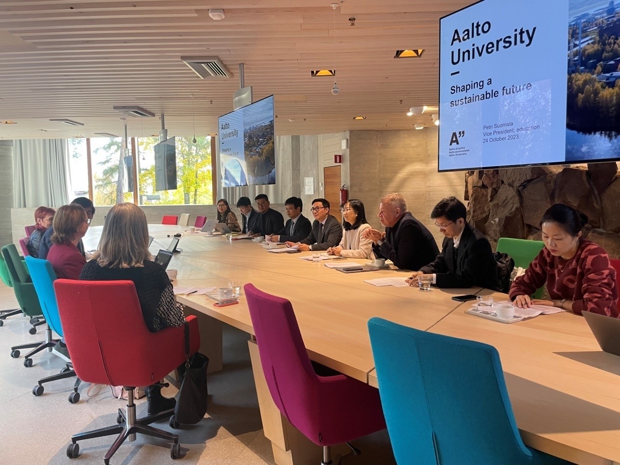 娄永琪还与阿尔托大学副校长Petri Suomala会晤,交流发展近况和合作现状,共同策划两校未来合作重点。Petri Suomala表示,将面向可持续发展的未来,推动两校合作往更深方向发展。